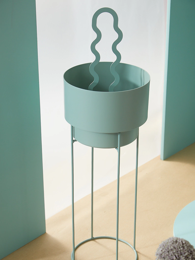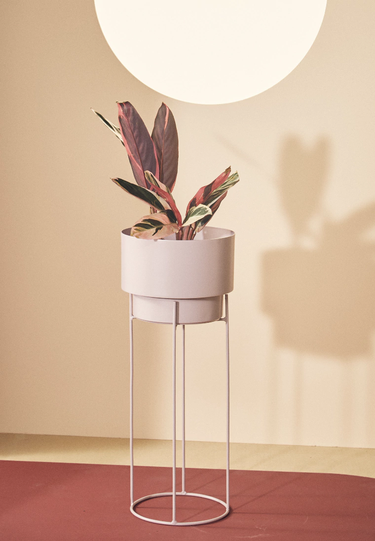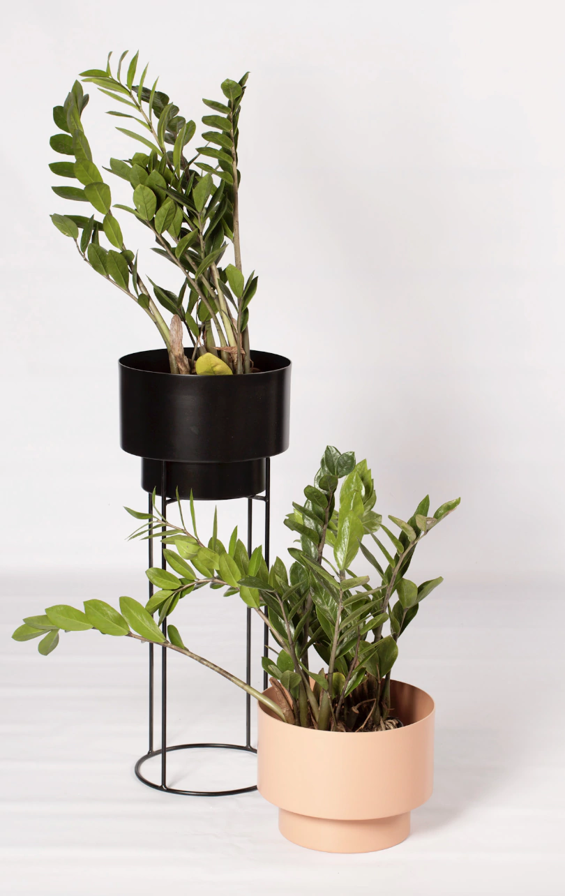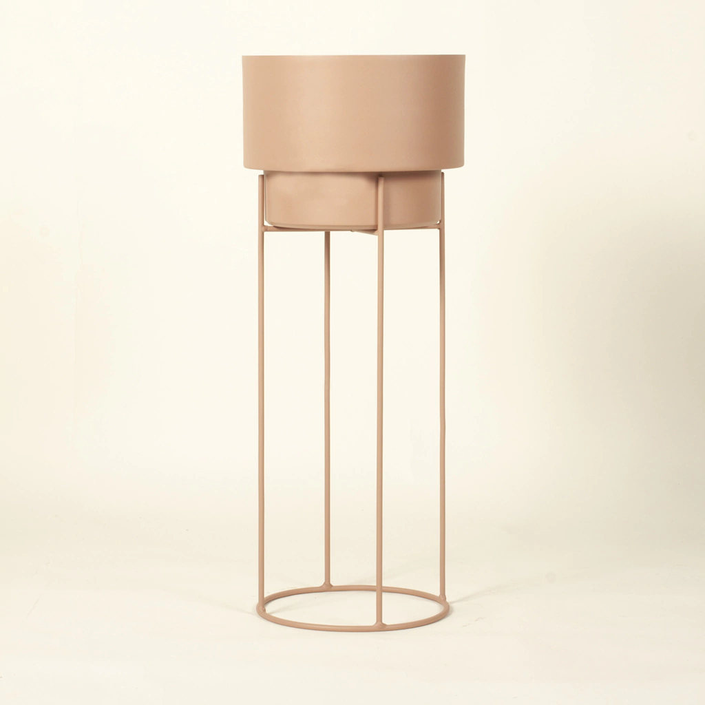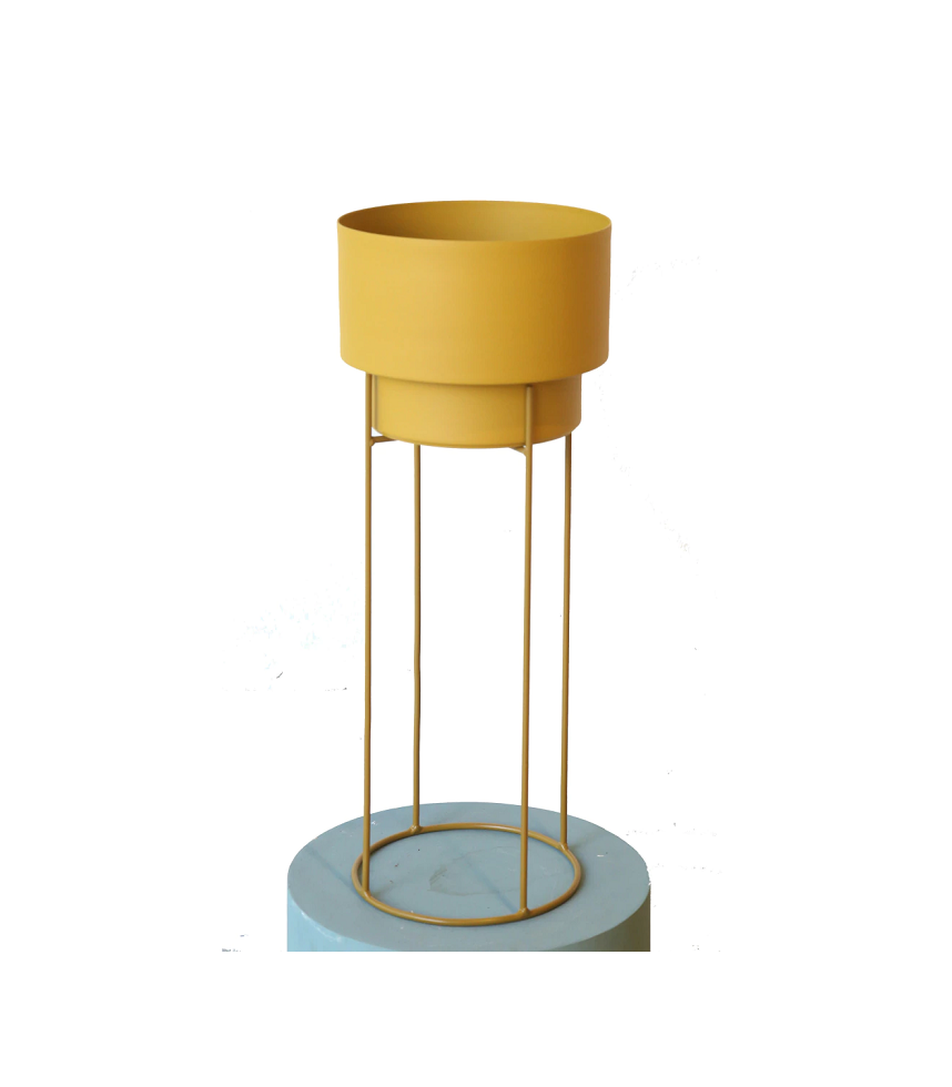 A nuestra maceta con plato N2 le sumamos una base de hierro para darle altura a tus plantas. La maceta y el plato están fabricados con aluminio resistente a la corrosión. Todo el set está recubierto con pintura en polvo aplicado a altas temperaturas, con acabado mate y microtexturados.